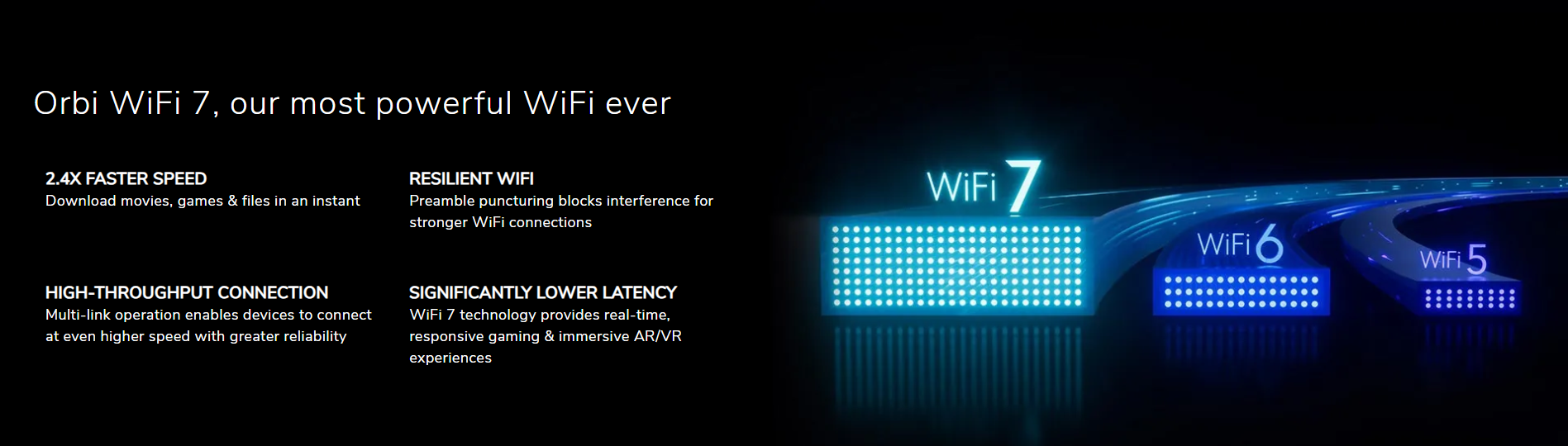 Orbi 970 Series uniquely unlocks the extraordinary power of WiFi 7 for your whole home, delivering unprecedented WiFi speeds from the front door to the back yard and the basement to the rooftop.