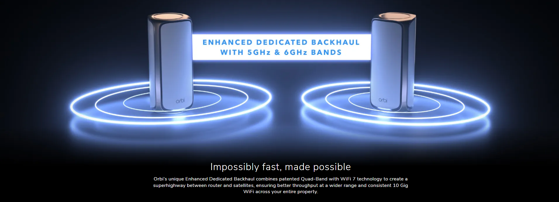Exclusive, patented Quad-Band technology with Enhanced Dedicated Backhaul ensures WiFi stays fast across all devices simultaneously